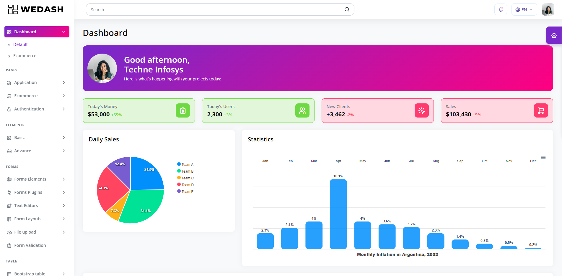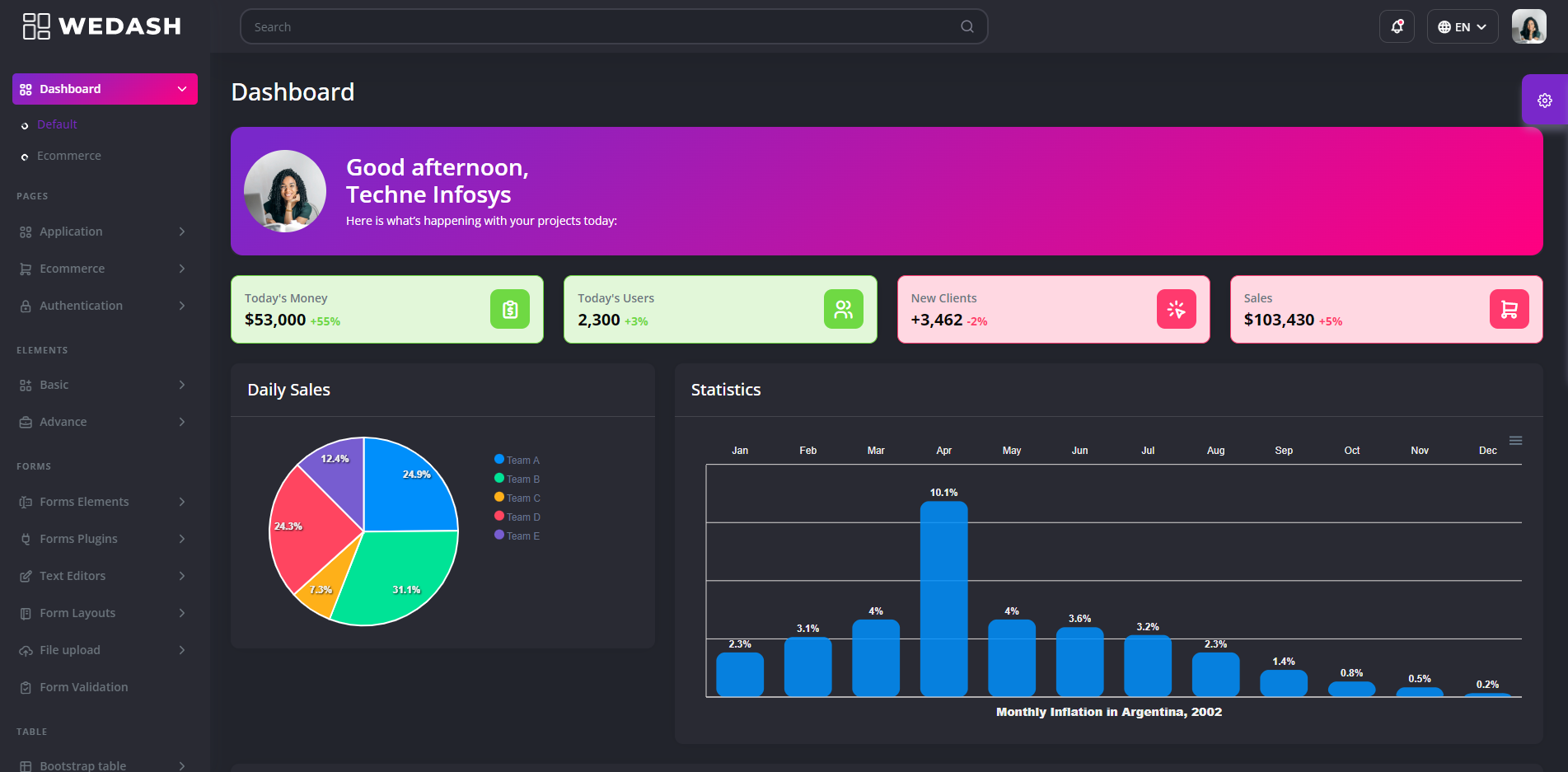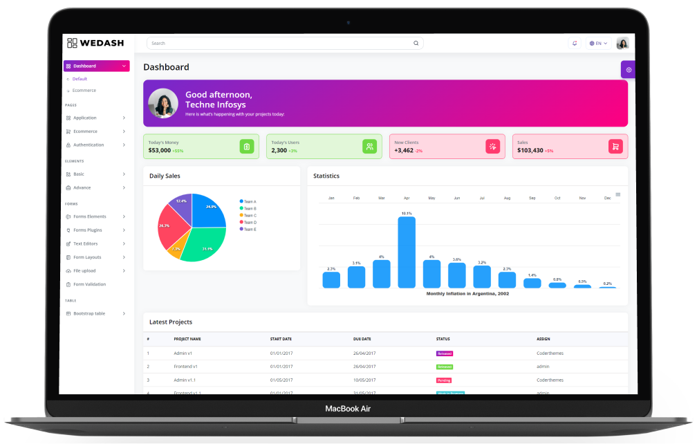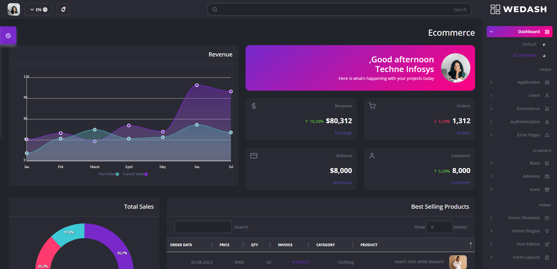 Start working with Wedash, the Impressive design, powerful features, and easy customization